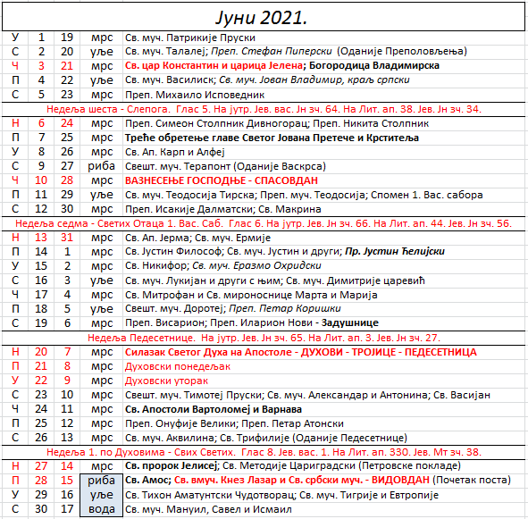 - * * * (звездице) - означавају строго уздржавање од било какве хранe и пића. За децу, старе и оболеле, увече разрешење на хлеб и воду.